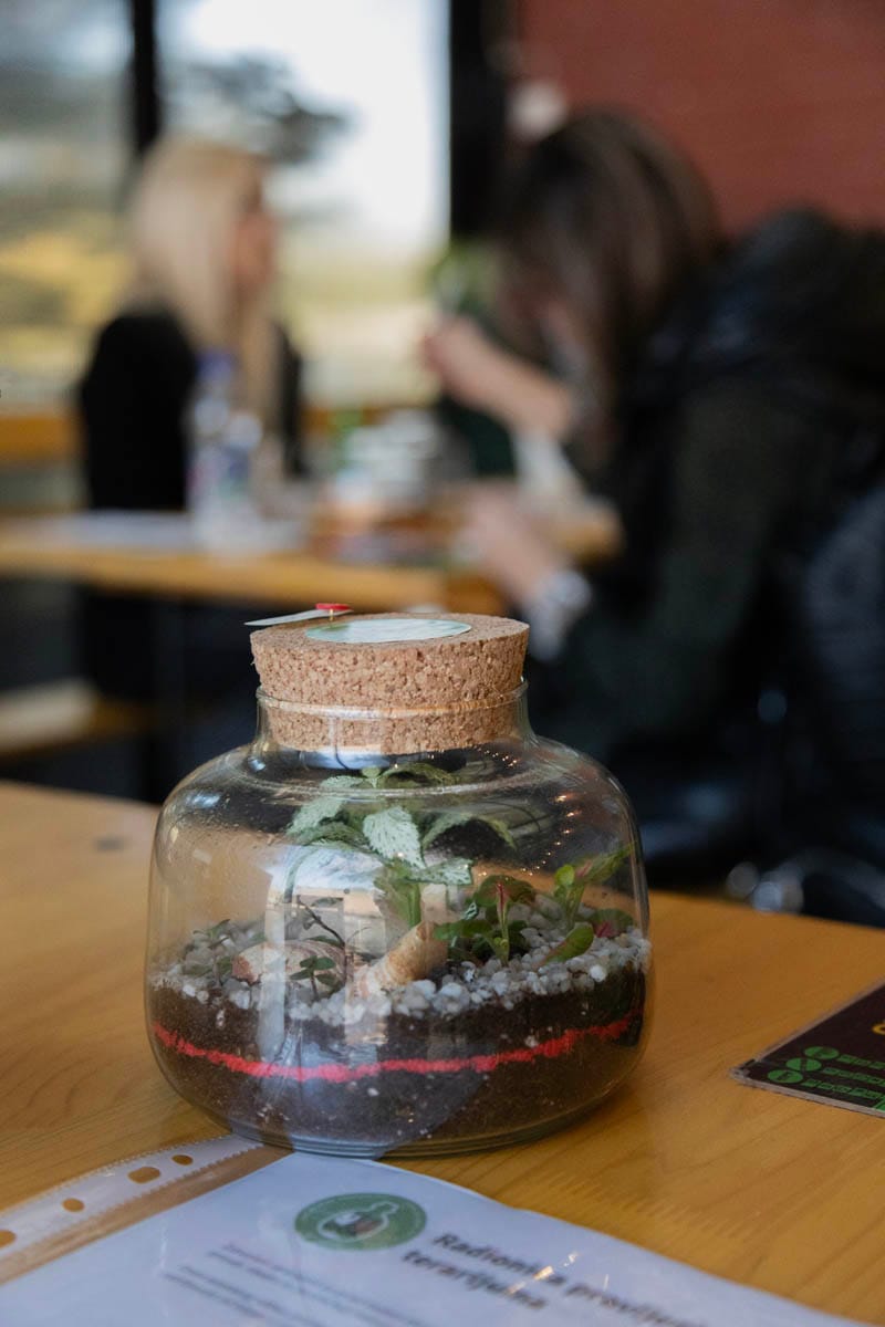 Samo nastavite ovako, radite sjajan i lep posao, na zabavan, edukativan i opuštajući način. Sjajno provedeno vreme na radionici – kreirali smo nešto čemu možemo da posvetimo vreme i uživamo dok posmatramo kako funkcioniše jedan živi ekosistem i kako stvari kruže u prirodi…ja znam da bi mene jako oduševilo da mi neko pokloni ovako nešto, a još kada imam priliku da ga sama napravim, uz stručnu asistenciju, pa nema ničega dragocenijeg. Hvala za sjajan provod!
