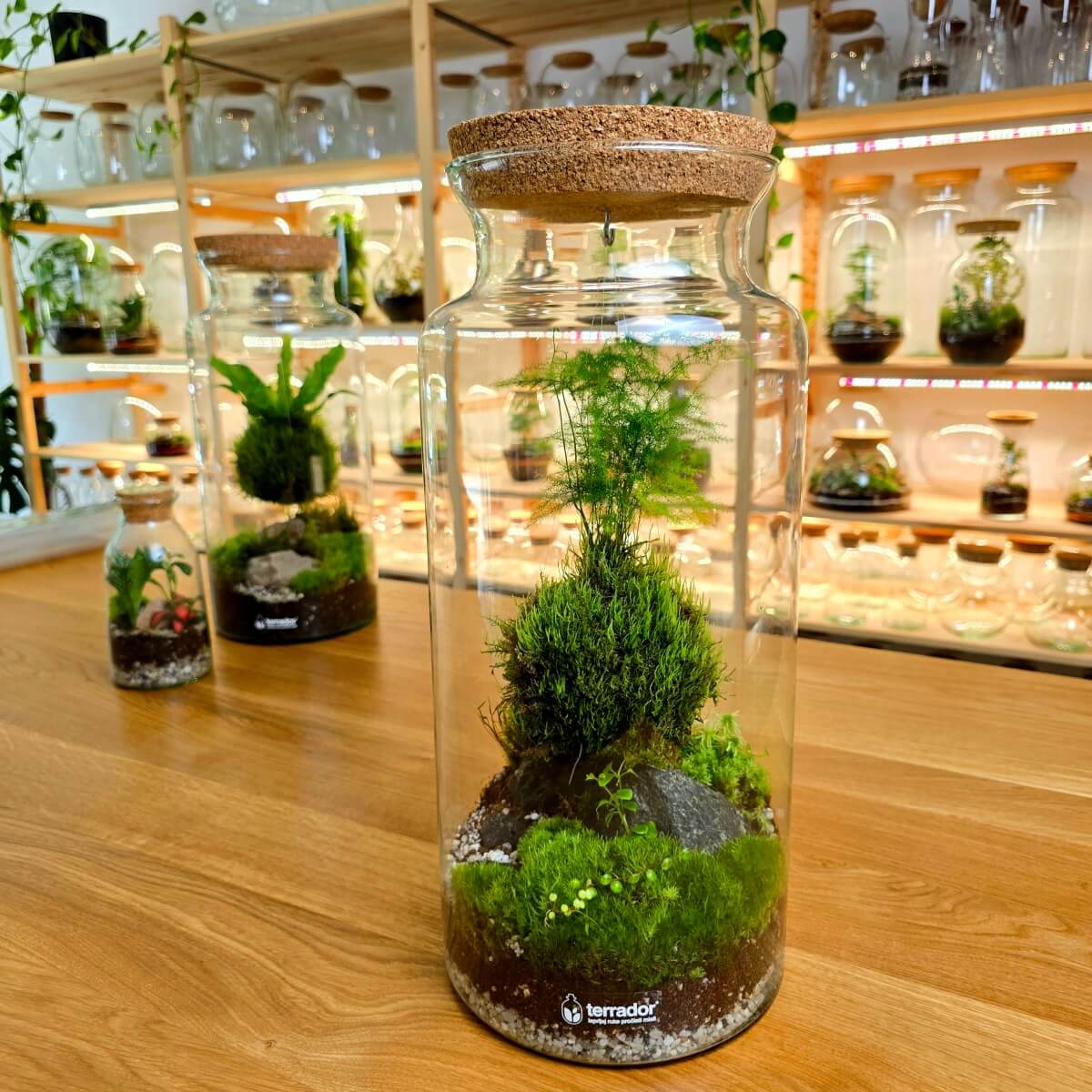 Terarijum je samoodrživi ekosistem u kome se biljke sade na pametan način i zatvorene su u staklu. Zahteva minimlanu negu, zaliva se samo nekoliko puta godišnje, a može da traje godinama.