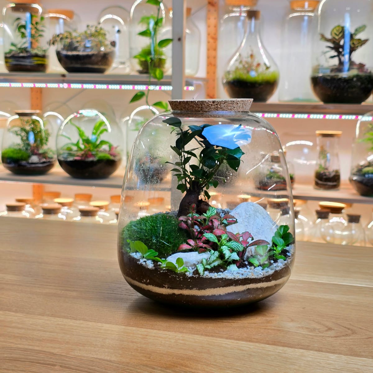 Terarijum je samoodrživi ekosistem u kome se biljke sade na pametan način i zatvorene su u staklu. Zahteva minimlanu negu, zaliva se samo nekoliko puta godišnje, a može da traje godinama.
