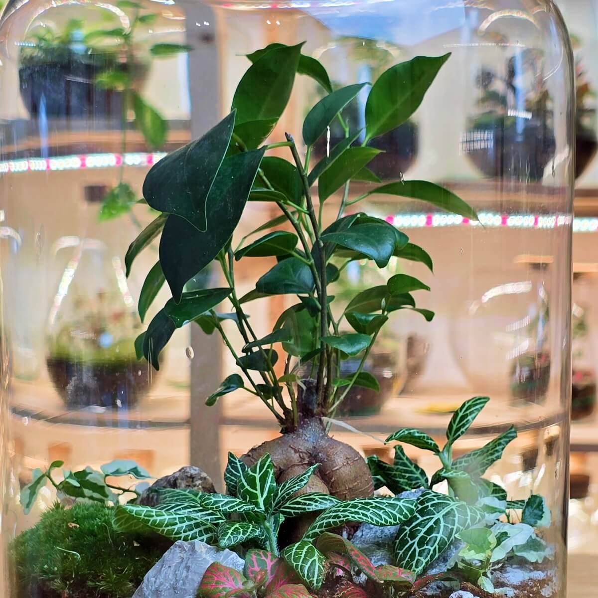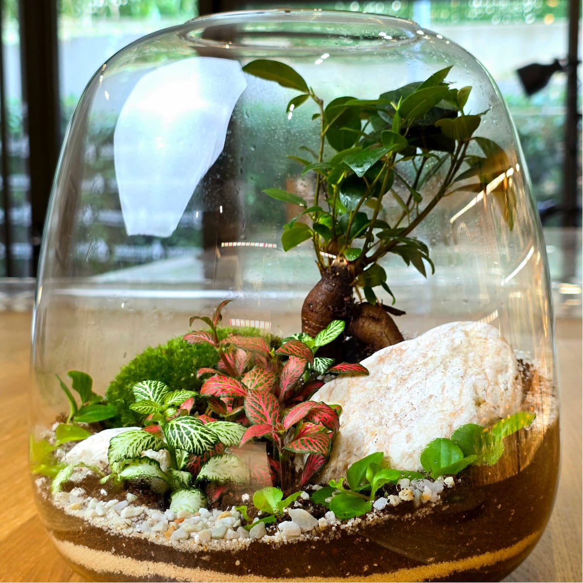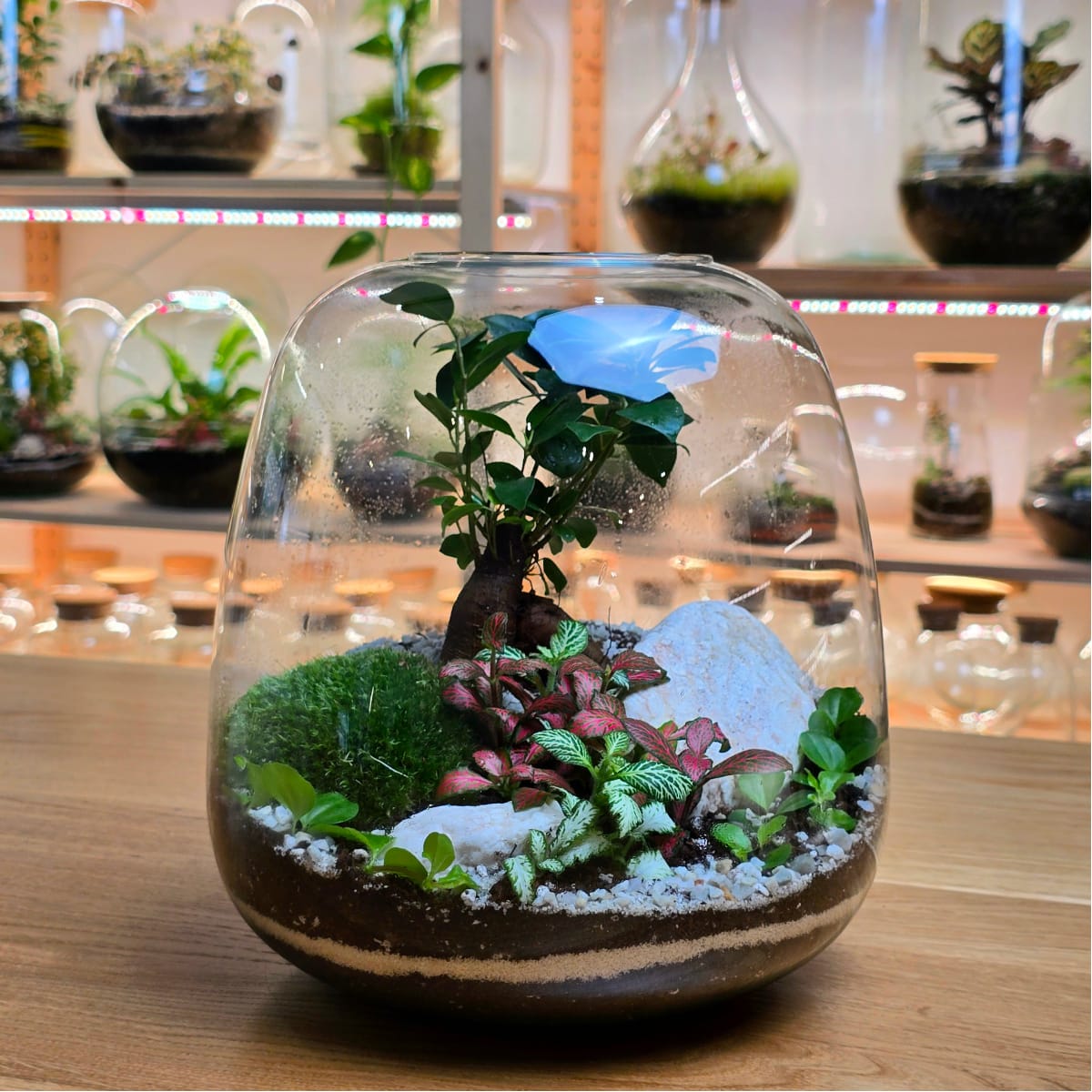 U tvoju kotizaciju je uračunata jedna staklena posuda po izboru, piće dobrodošlice (vino, kafa, čaj, sok) i svi potrebni materijali. Dobićeš i prelep primerak bonsai drvceta Ficus Ginseng koji će biti zvezda tvog terarijuma.