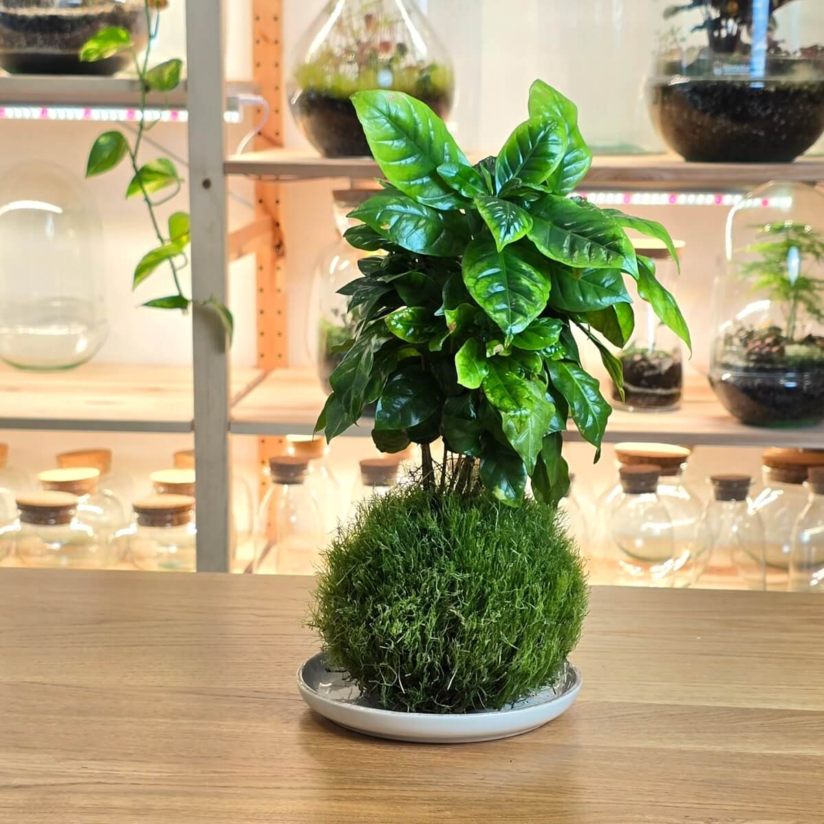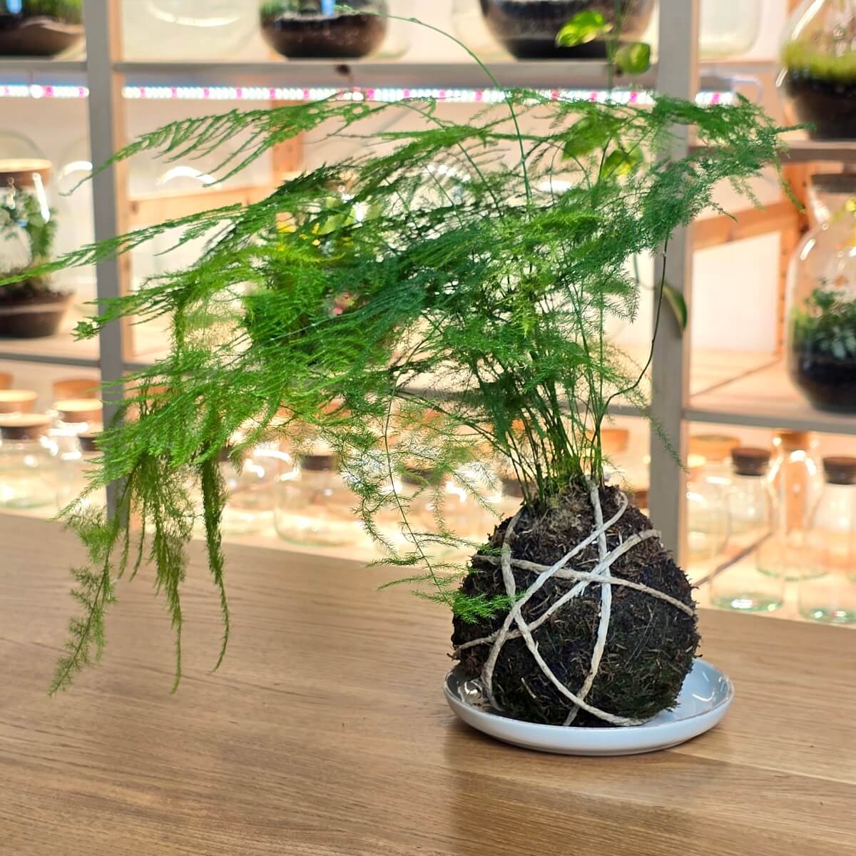 Uz kokedamu ćeš dobiti i prigodnu keramičku tacnu, na kojoj možeš da je izložiš u prostoru.