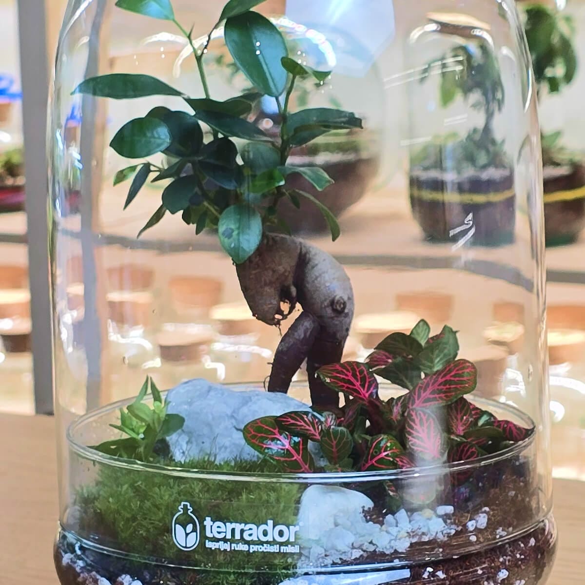 Terarijum je samoodrživi ekosistem u kome se biljke sade na pametan način i zatvorene su u staklu. Zahteva minimlanu negu, zaliva se samo nekoliko puta godišnje, a može da traje godinama.