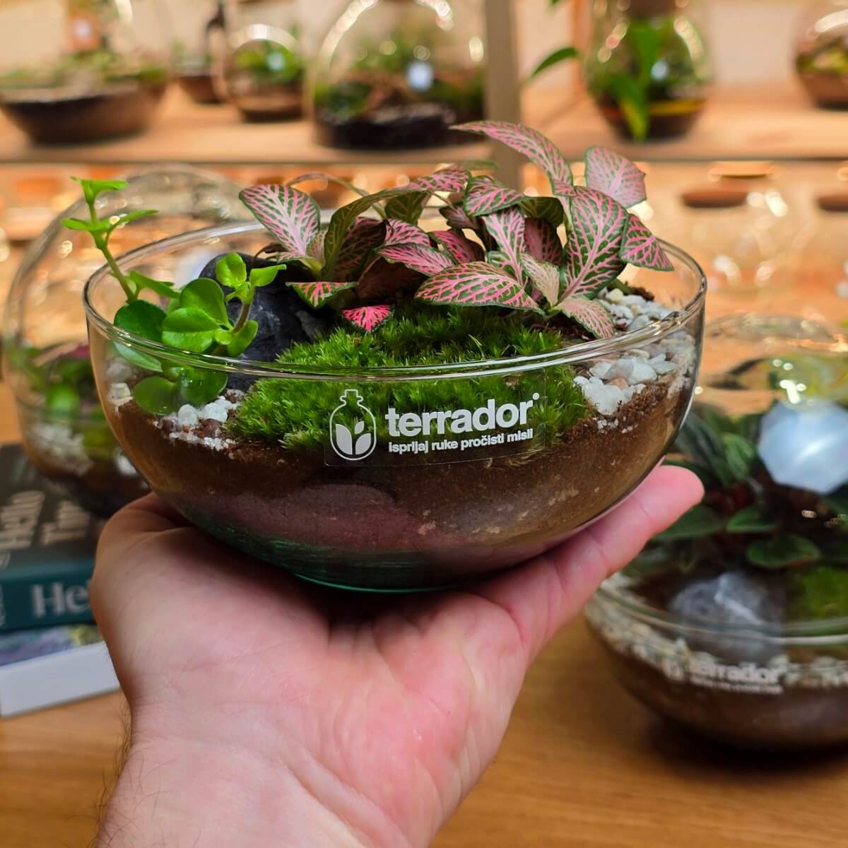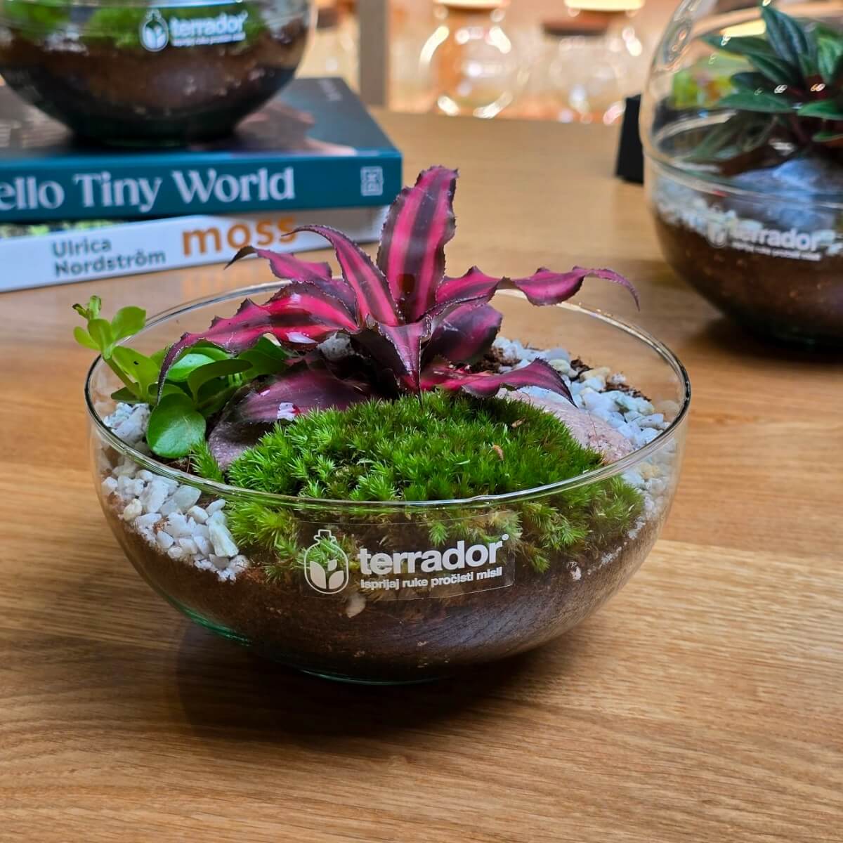 Terarijum je samoodrživi ekosistem u kome se biljke sade na pametan način i zatvorene su u staklu. Zahteva minimlanu negu, zaliva se samo nekoliko puta godišnje, a može da traje godinama.