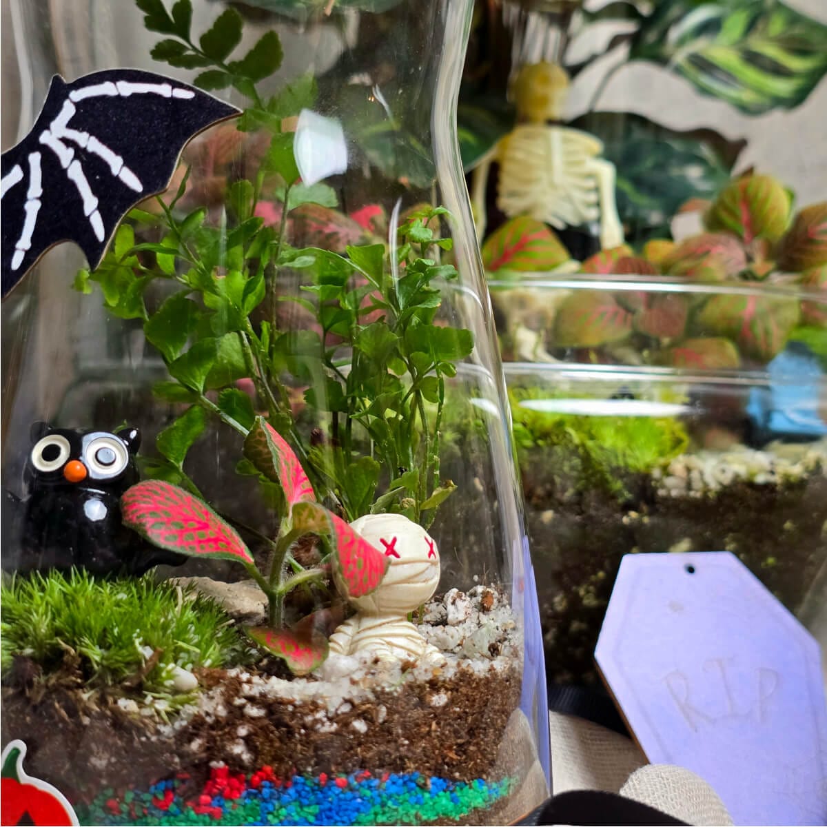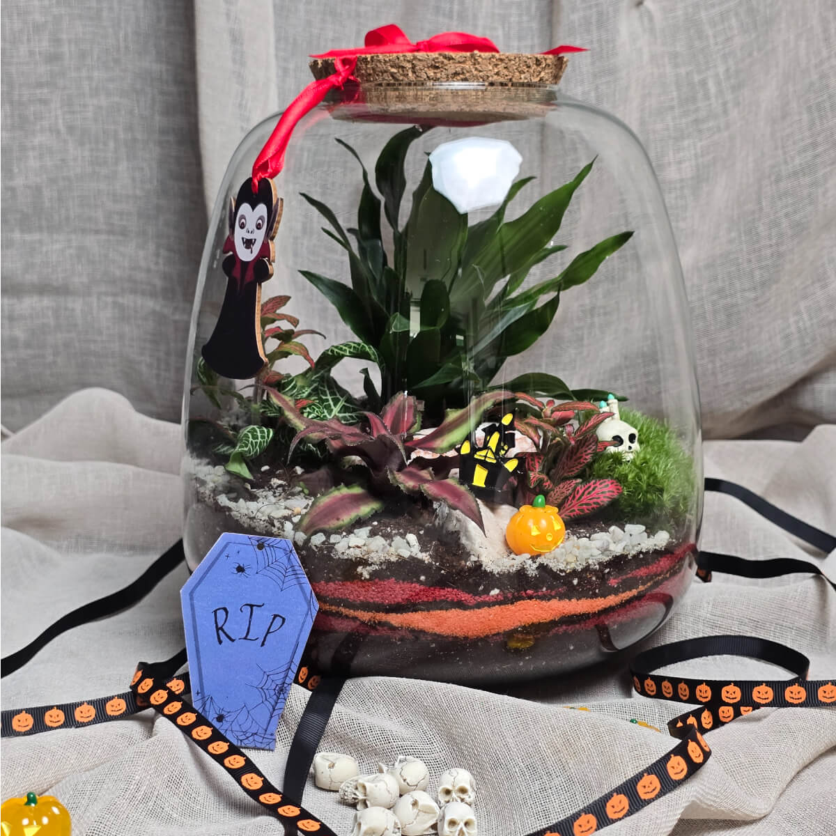 Jezive figurice! Strahotne visilice! Grozomorne boje! Zastrašujuće, egzotične biljke i kamenje! Pridruži nam se na tematskoj radionici izrade biljnih terarijuma povodom Noći Veštica 🙂